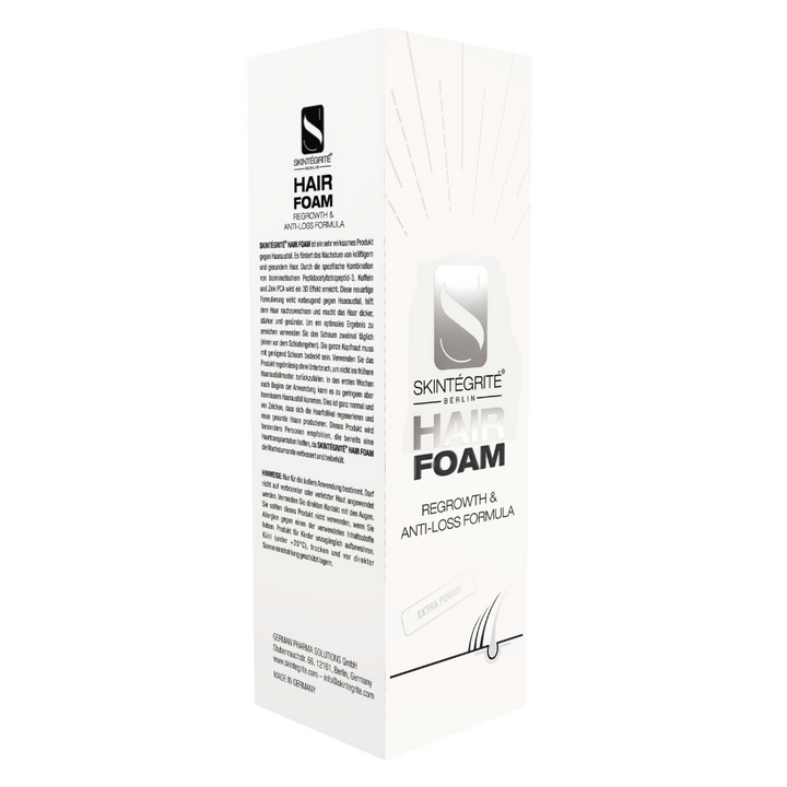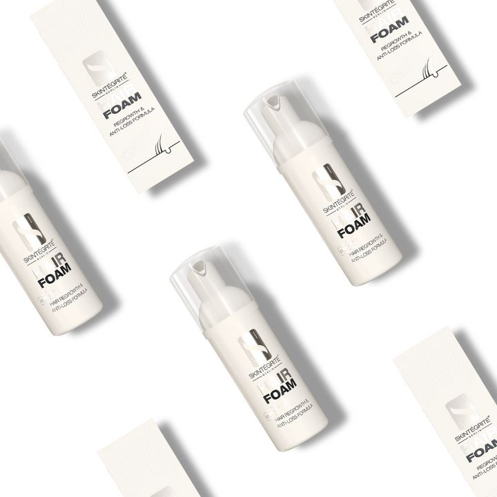 SKINTÉGRITÉ® HAIR FOAM is a cutting-edge solution formulated to combat hair loss, stimulate hair regrowth, and promote stronger, healthier hair. Its 3D-action formula combines the biomimetic peptide Acetyl Tetrapeptide-3, Caffeine, and Zinc PCA to target the root causes of hair thinning and follicle weakening.